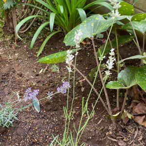 白いラベンダーと紫のラベンダーを植えました白いラベンダーを写してたら紫がチラリと入って来ました😁