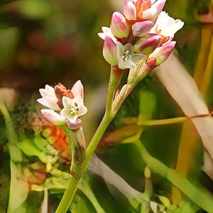 里山を歩いてみれば… 似たもの同士… アキノウナギツカミ×3 ヤノネグサ(矢の根草)×2 *花弁はなく萼片です。 秋の鰻掴み ⚫︎⚪︎⚪︎⚪︎⚪︎