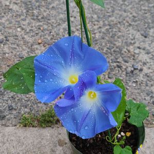 おはようございます。 西洋朝顔ヘブンリーブルー。 小さな5号鉢にも、2つ花が咲きました。