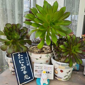 こんにちわ🥰☔ 今日は朝から冷たい雨と強風🍃で何も出来ませんね😰 🏷️モアイの日 🏷️毎月16日はトトロの日 🏷️るる かまぼこ板で繋がる輪 参加させて頂きます✨😌✨ 1枚目 マロママさんから頂いたシマエナガモアイ🗿とノースポール😊 2枚目 るるさんのたにく鉢とダルマシュウレイ・ハクホウギクも根付いた様です😊 ひとさんの💗アミアミ🧶鉢の多肉ちゃんはまだ根付いてないかな~🤭 繋がりに感謝です🙏 今日も良い1日になります様に🥰