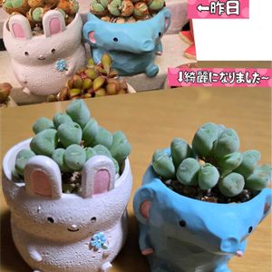 こんにちわ🥰 🏷️毎月16日はモアイの日 🏷️毎月16日はトトロの日 🏷️くじらの日 🏷️ブースカ 参加させて頂きます✨😌✨ 左側🩵🐳さんのアスパラガスは枯れてしまいましたがポイポイと入れた葉挿し多肉ちゃん髪飾りの様に成長しました🥰 新しくお迎えした100均アスパラガス🩷🐳さんに🥰 100均サボちゃん🌵(300円もあり)は皆元気だな〜👏 今日も暑くてムシムシ〜🥵 頑張りましょうq(^-^q)