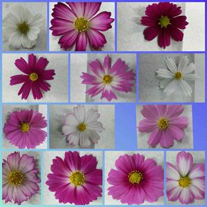 秋桜集合です🎵🎵🎵 ぜ~んぶ違う顔(*´∀`)♪✨ なんだけど…… 去年、種採取して全部撒いたのに…… レモンイエローと八重のが咲かない(..) 悲しすぎる……😢 変わり種は弱いのかなぁ😔