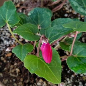 シーズンオフのハズのガーデンシクラメン 2️⃣昨年(2023年)、シロ&ピンクの株が6月(梅雨時期)に狂い咲きしましたが、 1⃣今年(2024年)は、赤の株が7月(梅雨明け宣言と同時)に狂い咲き確定しました~😅