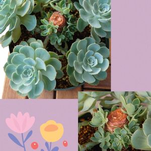 うちのもう1つの七福神さん✨ 親株の下にぐるりと均等に子株がついているのを見て作ってみたかったけど、密になって潰れた部分をカットした(右下のpic)から出来なかったわ〜💦 子株の隙間もスカスカだし…難しい😅 いつか綺麗に作ってみたいわ~😆🩷