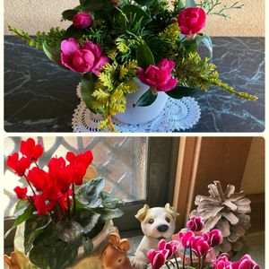 おはようございます☁️ 今日の天気、雲☁️11時〜13時雪❄️13時から雨☔️の変わりやすい天気予想です ⬆️ 庭の山茶花を飾って見ました ⬇️ 昨年にお迎えをしたガアデニング(シクラメン)今年こそ❗️ 夏越し成功したいな〜