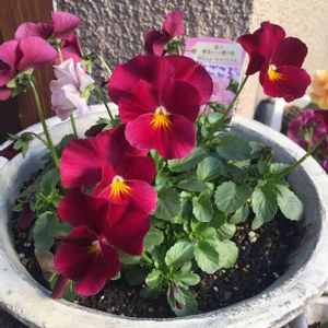 ビオラ 乙女こころ 赤の後ろに淡いピンクちゃんも隠れています。