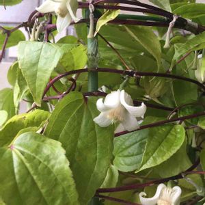 クレマチス アンスンエンシス 冬咲きクレマチスが欲しいなと思っていたら、 出会ってしまいました😍 小さいベル🔔状の真っ白なお花。 うつむき加減のお花を下から覗き込む毎日です😊
