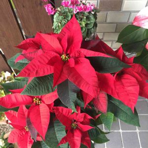 ポインセチアとガーデンシクラメン ここだけクリスマスの雰囲気 もうすぐ12月。1年早いな〜