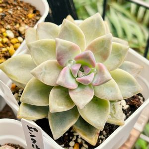 日陰に入るとヒヤッとしますが、ベランダは👕でないと無理な感じです☀️💦 【グラプト鉢1号】 全体的に位置をずらし、少し隙間を確保しました🐥 桜月の🏷️を外せないのは↓の桜牡丹って葉数が多いはず!って思ってるからです。 (勿論、個人の主観です。) 🏷️かわとうちゃんの桜* 初恋はすぐに分かりますが、パープルキングと桜月(キュウ:別鉢)が分かりにくいのでパーキンを初恋に並べて配置。 ついてこれん...よね😅 淡雪?って初めて思いました。 痩せることがあるんやね(^ω^) 続く!