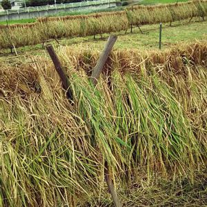 陸稲のもち米 日干し中 今年は収穫できました。 去年のうるち米は、実りが悪く収穫することができませんでした。 でも稲藁は、とっても優秀で重宝しました。 今年はちょっぴり食べることができそうです。 藁も有り難く使わせていただきます🙏
