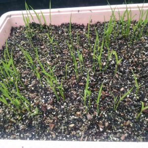 畑で陸稲を育ててみようと思います。 芽出しして苗床に播いておいたらスズメが啄んでしまい、これだけ残ったようです。