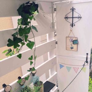 以前リビング前に作ったフェンスに… 少しでも西日避けするため板を設置し、ドアのようなデザインにしてみました〜😊 蝶番で固定しているので、水平にすることもできます✨