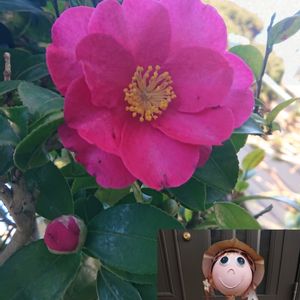 今朝裏庭にて💕 寒さに耐えながらも 寒椿がまだ咲いていましたよ🍀。。😄