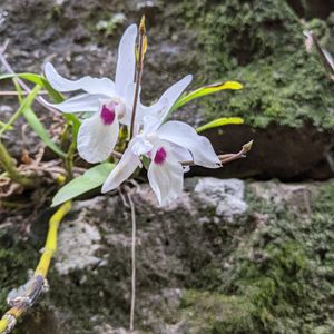 デンドロビウムを昨年石垣に刺していました。花が咲いています。