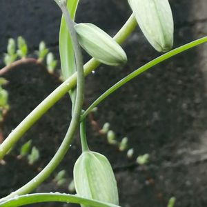 こんにちは。◕‿◕。 am11:00やっと雨がやみました 今日のお花「バイモユリ」このお花も、昨年に比べて開花が少し遅いです