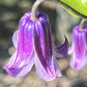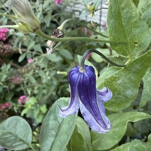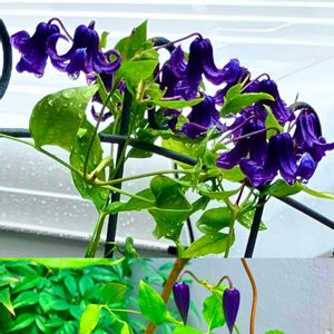 こんにちは☀️ご無沙汰しています 最近涼しくなってホッとしています私は夏バテなのか調子悪かったです😅💦 今クレマチス『ロウグチ』が元気に咲いています💜 実は暑い時期に水切れを起こしたのか枯れたようになってしまったので地際近くからカットして様子を見てたら芽を出して鈴なりにお花を咲かせてくれました💜 今までの水のやり方ではいけなかったと反省です😓 🏷️人に優しく 🏷️コラージュ仲間達 🏷️日曜日のコラージュに参加します😊💜💜