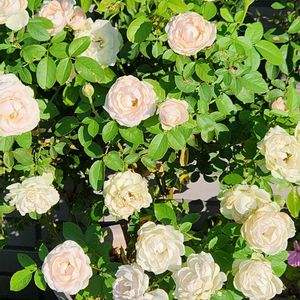 7月から今まで水やりしながらチラッと見て 何でこんなに元気❓と思っていた花 ①バラ 他のバラたちは病気になったり 虫に食べられたりしてるのに このバラさん 春よりもたくさん咲いてるかも ②クレマチス ロウグチ 7月から二番花が咲き始めどんどん花が増え 9月になってもまだ咲いてます 雨で花はだいぶ痛んでるけど picは花全体の半分です