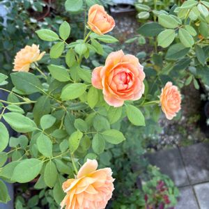 おはようございます☁️ 午後からは雨予報 今朝のお花は 庭のバラ🌹 1,2 レディオブシャーロット まだまだ花数少なく 来年春に期待です☺️ 3 セプタードアイルと アプリコットキャンディ 秋になって優しいピンクのお花 コロンと咲いています🎶