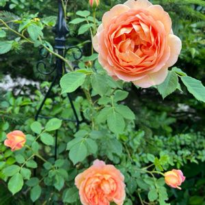 レディオブシャーロットの秋バラです♡ ほんのちょっと切り戻す程度の夏剪定しましたが、芽の動く時間にばらつきがあって1輪ずつ咲いてます