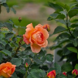 おはよーございます😊✨ 薔薇🌹【レディオブシャーロット】 デビットオースチンの薔薇🌹 小苗ながらに鮮やかなオレンジ🧡の薔薇を咲かせてくれましたよ👍 来年は苗も大きくなり更にたくさん咲いて欲しいです🥰