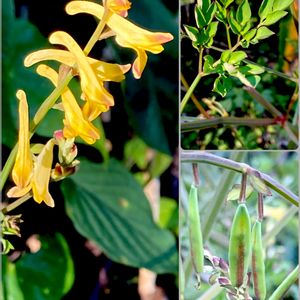 ナガミノツルキケマン 別名 ナガミノツルケマン ケシ科 キケマン属 昨年はじめて見つけたナガミノツルキケマンに今年も会えました💛🌿 果実が2cmほどの長い実で蔓が他の植物に絡まって咲きます。