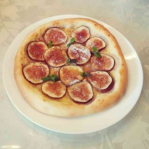 イチジクでピザを作りました。 イチジクの下にはカスタードクリームが塗ってあります。 でも、娘に見かけが茄子🍆みたいと言われてしまいました💦 イチジク、甘くておいしいのに。