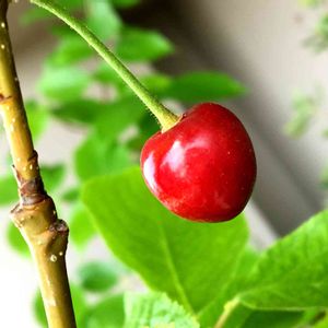 ~Kurumi*garden~ 初夏の赤い実🍒が可愛いでしょ♡ ❁*.お花の後は実も楽しめちゃう♪ プラムの味かな🎵 (๑´ڡ`๑)❤️ お庭のユスラウメですよ🌿