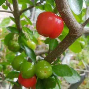 アセロラの実が付きました🎶 今年は10個位は食べられるかな! 緑の実見えますか? 赤く完熟すると美味しいので楽しみです😄