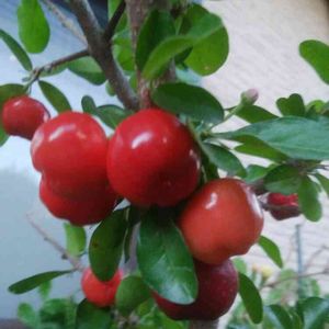 「アセロラ」 ついに初収穫しました😁 氷に浮かべてパチリ📷 いただきま~す🎶 甘酸っぱくて美味しい😋どうぞ召し上がれ😍