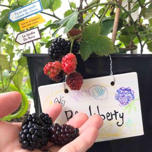 おはようございます🕊️🍀 お友達の庭の「ブラックベリー」が鈴なりに💜 バラ科キイチゴ属🍓 キイチゴは総称で、ブラックベリー、ラズベリーが代表とされています。 花には沢山のミツバチちゃんが💕🐝✨ この日は、ご主人が薪を燃やし、ご飯を炊いていました。 うちから数キロ離れているだけやのに、この素敵なリゾート感ε٩( º∀º )۶з エアコン無しもビックリ⤴️ 彼女の手作りのブラックベリーのジュース🍹めちゃ美味しかったです❣️