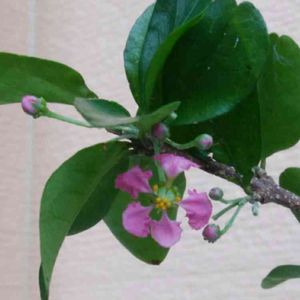 「アセロラ」 可愛いピンクのお花が咲きました! 実も付いています。 赤く熟れると美味しい😋 待ち遠しいよ〜😀💞