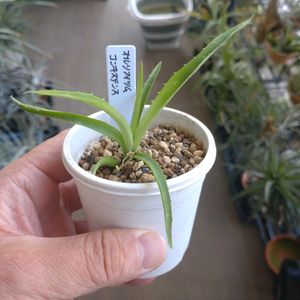 以前から育ててみたかった原種マルニエル ラポストレイも手に入れた。 様々な交配品種の親で、mlって書いてあればコレ、綺麗に育てれば白いトリコームに覆われた可憐な姿を見せてくれるはず。太い葉に密で小さな鋸歯も他のディッキアと比べて優雅な印象。 この子もフランスのラポストール夫人の名を冠す子ですね。 うちにはユーフォルビア スザンナエマルニエラエもいますので。