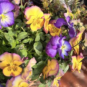 夕焼けに染まる虹色パンジー🌈 ニート生活も3週目❣ 午前はカーブス 午後はウォーキング🚶♂ 案外、暇じゃない。 ➡パンばっか焼いてます🥯 こりゃ、暇って言うんか⁉️ 🤣🤣🤣🤣🤣 https://www.instagram.com/mackie.ykr