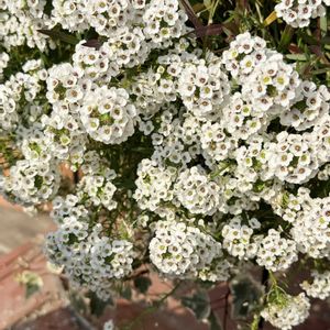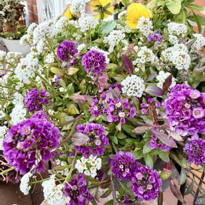 スーパーアリッサムꕤ*.゚ 名前の通りスーパー❣ でも、だらしなく広がる😭🤣 一緒に植えてるストック達も 危ういので、仕立て直しかな🤔