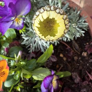 ギャオス🦖 恐竜の口ではありません🤣 ローダンセマム ホスマリエンゼ🌼 薔薇植え替え用に、牛💩を買いに行っただけなのに、つい(*ノω•*)テヘ