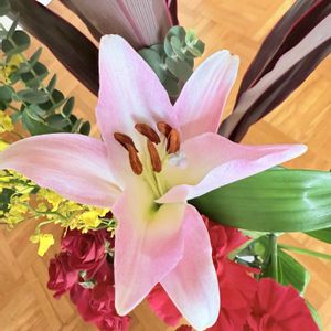 蕾だった頂き物の花束の 百合が咲きました⚜ 香りに、咽る🤣🤣🤣