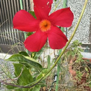 ご近所さんに回覧板を持って行ったら 玄関先で咲いていました🌺 Google師匠は「マンデビラ」との 回答だったけど、ぶっ挿してある タグは、秋○の漢字2文字だったんだけど、思い出せん💦