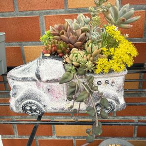 セダムに花が咲いた❣可愛い💕 多肉の寄せ植えに こんな変化があるんだ(ღ˘⌣˘ღ) 夏は休眠するらしいから 来週、1週間かける気持ちで 一鉢作る予定🌵