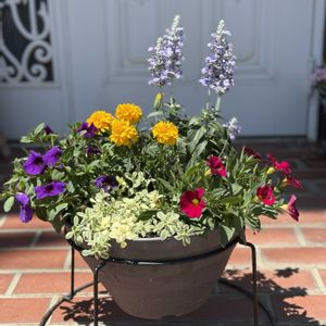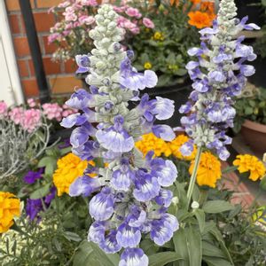 サルビア ファリナセアが咲いて 寄せ植えも良い感じになって来た💕 全容は、しばしお待ちを❣ ずっとお待ちの可能性有り🤣