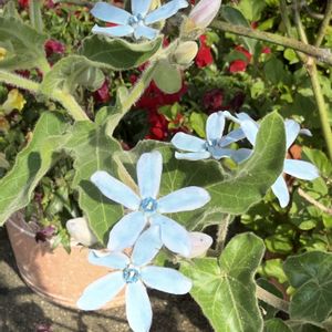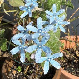 冬越しブルースターが咲きました💙 木質化が進んでいるし 黄色い虫が付いてる鉢がある😭 挿し芽しなくっちゃ🌱 今月も(❁ᴗ͈ˬᴗ͈)⁾⁾оO(㋵㋺㋛㋗㋧