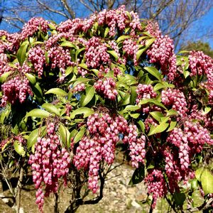 今日のお花*アセビ🩷 昨年、今年の出会いから… 《スライドpic》 ①~③ ベニバナアセビ(紅花馬酔木) 別名・アケボノアセビ(曙馬酔木) ④、⑤ 水曜日、池の畔では実🤎がついてる枝に膨らんだ蕾もたくさん❣️