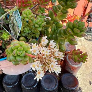 枯れそうだったルビーネックレスを挿し木用の🪴鉢に放し飼いしてたらいつの間にかこんなになってました🌼