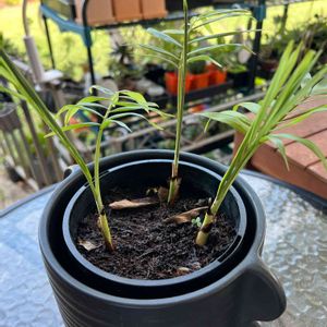 テーブルヤシをテーブルの上に置いてみた👀 密集していたので株分けを兼ねて少し🤏間を開けてみたけど🤔余計なことしたかな🤔 見た目👀ちょっと🤏寂しい😔