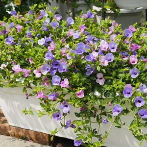 PWスーパートレニアカタリーナ 毎年必ず購入し、楽しみつくすスーパートレニア。這性のトレニアです。 今年は新色が🎵 濃いパープルのアメジスト(1枚目)。あるお店ですんなり手にはいりました。クリアな紫がキレイ。ブルーリバー(2枚目)はいくつかのお店で見かけました。ラムレーズン(3枚目)も新色、2ポットだけ花なしのが残っていました🙌 咲くのが楽しみ💠 店頭で見つけられなかったアイスリバーとピンクリバーはネットで注文しました😃 アイスリバーのあいまい色が一番好き。