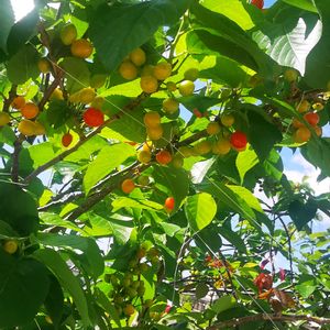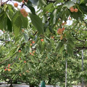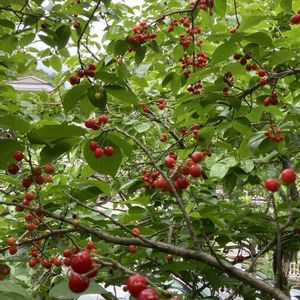 My Garden 🍒サクランボ佐藤錦 今年は🍒青いうちから鳥が食べに来て、やっと赤くなってきたが少ないです😅