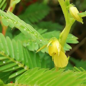 「黄色い萩?」かと思いましたが、葉っぱの形状から「クサネム」かなぁ❓😌 花びらが開いていないので分かりずらいですネ。🧐 クサネムは水田などに発生し、種が玄米と同程度の大きさのため収穫期に混入しやすく除去が困難なため、お米の等級を低下させる厄介な雑草のようです。😱