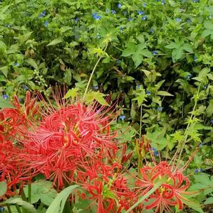 近所の、川沿い 露草と、彼岸花 秋満喫です。