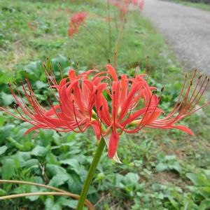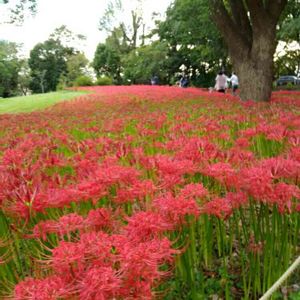 近所の公園に綺麗に咲いてました😻💕 🎶マンジューシャカ 恋する女は マンジューシャカ 罪作り 白い花さえ 真紅(まっか)に 染める🎶