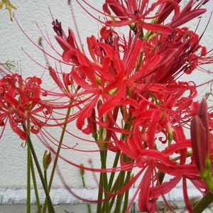2020/09/24 花散歩…👣🐾🌿❤️ やっと会えました… ヒガンバナ…赤い花…❤️🙆🏻♀️ 白い壁の前で… 華やかに…❣️🤗🎀