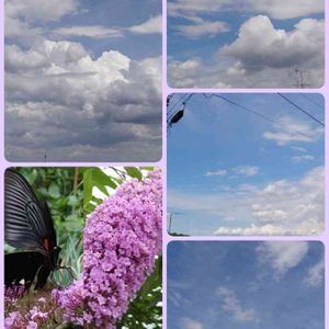 13時30分頃の散歩中の空 近所のお宅フサフジウツギ 今は雨が降って来ました。
